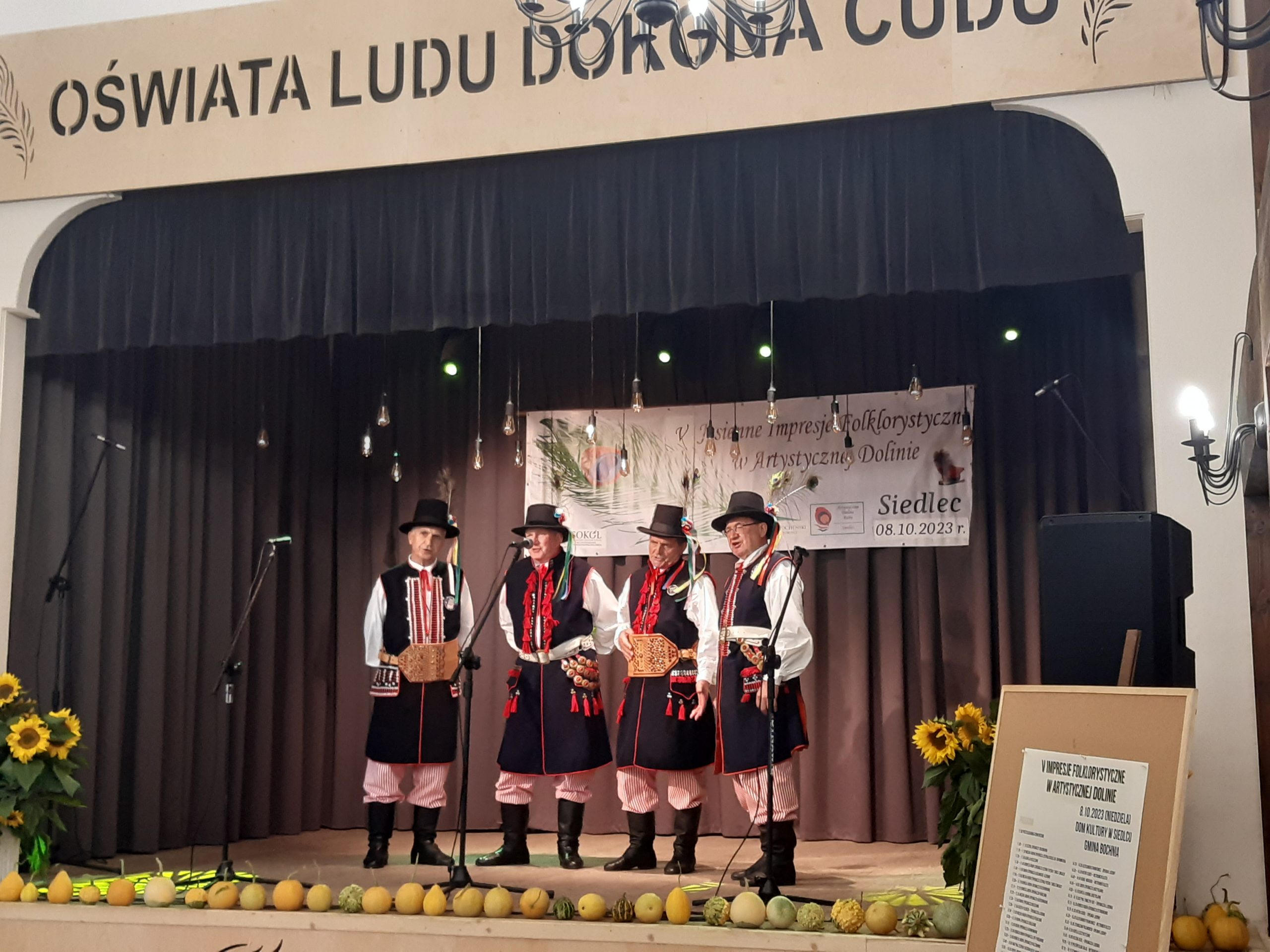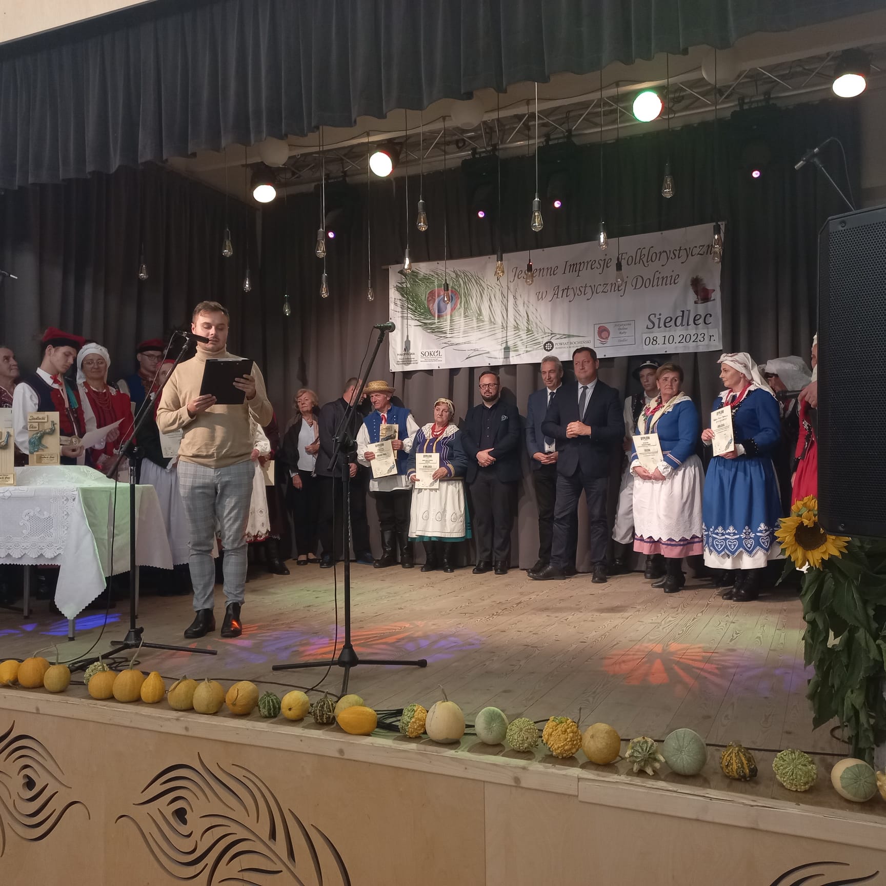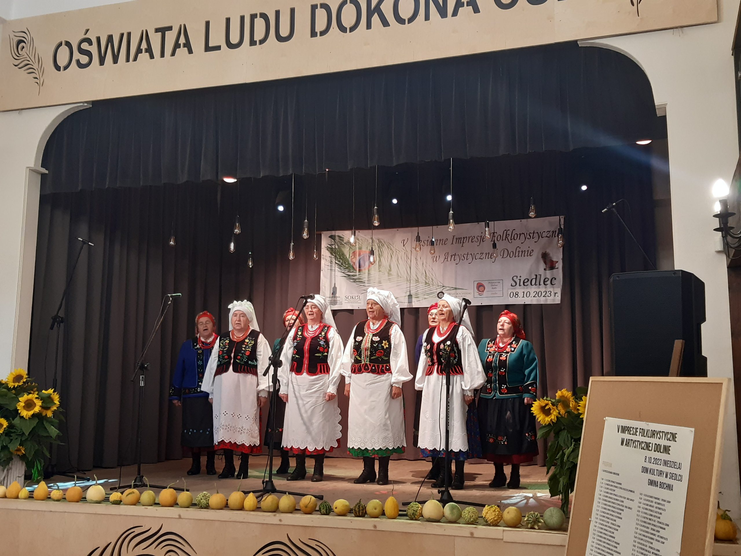 Spieszymy z podsumowaniem VI Impresji Folklorystycznych, mimo że festiwalowe emocje już opadły. 6 października 2024 Siedlec rozbrzmiewał folklorem. Na scenie pojawili się artyści z 8 powiatów i 19 gmin województwa małopolskiego i śląskiego. Występy oceniało profesjonalne jury w składzie: Monika Kurzeja –muzyk, główny specjalista w MCK Sokół w Nowym Sączu, Michał Pastuch-muzyk folklorysta, Wiesława Hazuka– choreograf, Beata Rompała- folklorysta, Patryk Rutkowski– etnolog, antropolog kulturowy, choreograf, specjalista w MCK Sokół w Nowym Sączu. Wszyscy wykonawcy prezentowali na scenie folklor własnego regionu w formie tradycyjnej. Barwne stroje, piękna muzyka, niepowtarzalne wykonania pieśni ludowych towarzyszyły wszystkim kapelom, grupom śpiewaczym, śpiewakom ludowym i instrumentalistom.