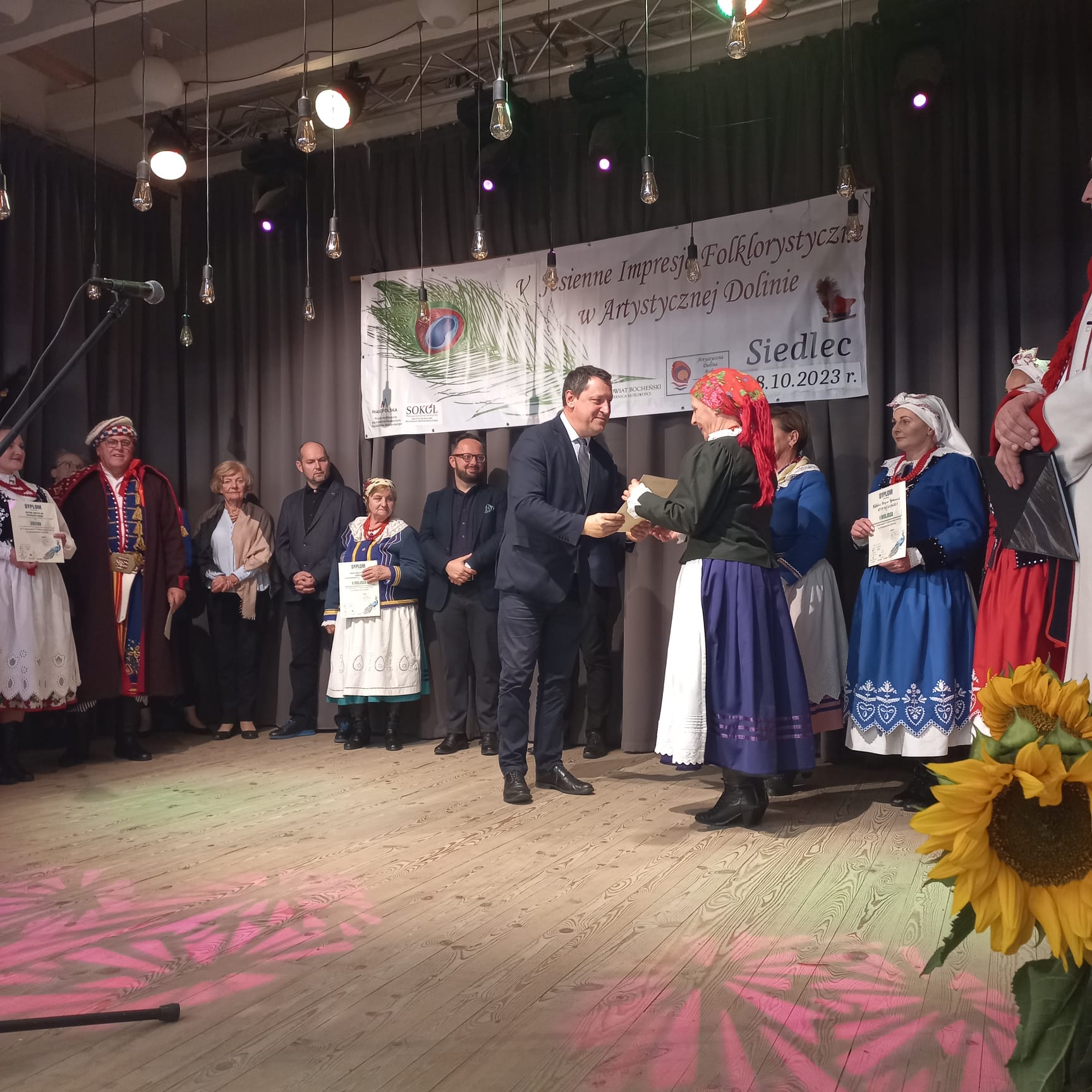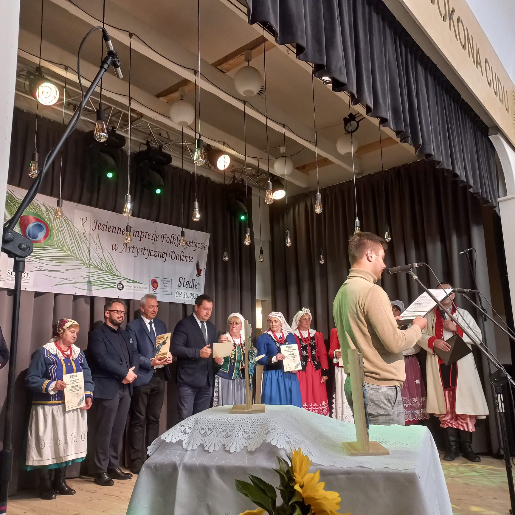 Wspaniale spędzony czas, niepowtarzalni artyści, cudowni ludzie, którzy tworzą klimat tego festiwalu- wszystkim należą się niskie ukłony. Słowa nie oddadzą tego, co w niedzielę 8 października działo się w Artystycznej Dolinie. Muzyka, śpiew i taniec rozbrzmiewały w Siedlcu, a fotografie są tylko dopełnieniem tych magicznych chwil. Dziękujemy wszystkim występującym artystom, którzy prezentowali swój dorobek artystyczny przyczyniając się do kultywowania tradycji ludowych i regionalnych. Jesteście wspaniali. Dziękujemy, że przyjeżdżacie do „małej stolicy folkloru” jaką jest nasza Artystyczna Dolina. To dzięki Wam Siedlec staje się ważnym ośrodkiem ochrony dziedzictwa kulturowego w Polsce. Wszystkich artystów oceniało profesjonalne jury w składzie: Michał Pastuch-muzyk folklorysta, Wiesława Hazuka– choreograf, ekspert polskiej sekcji CIOFF, Patryk Rutkowski– etnolog, antropolog kulturowy, pracownik MCK SOKÓŁ w Nowym Sączu, Monika Kurzeja -muzyk, główny specjalista do spraw terenowych dziedzictwa niematerialnego MCK SOKÓŁ w Nowym Sączu. Zwieńczeniem festiwalu był koncert wspaniałego Zespół Pieśni i Tańca „Ziemia Gąbińska” z Mazowsza. Barwne stroje, piękna muzyka, niepowtarzalne wykonania pieśni ludowych towarzyszyły naszym gościom specjalnym.